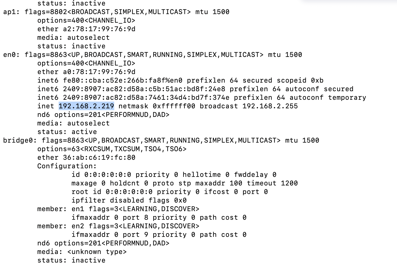 mac 下用ifconfig 查看IP地址